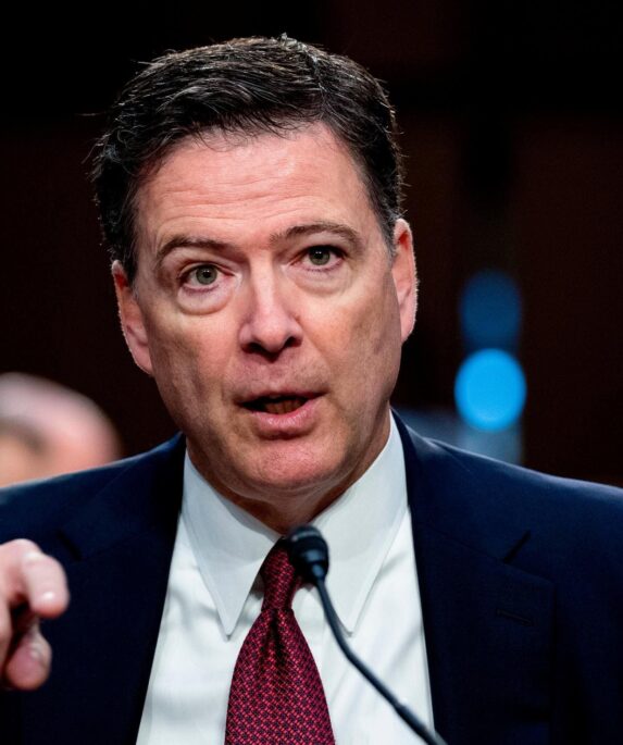 A courtroom sketch of former FBI Director James Comey and his attorneys standing in a federal courthouse in Alexandria, Virginia, on Oct. 8, 2025. (Dana …